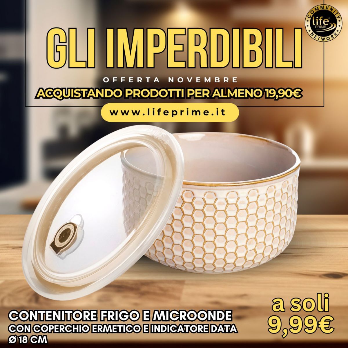 CONTENITORE FRIGO E MICROONDE CON COPERCHIO ERMETICO E INDICATORE DATA Ø 18 CM