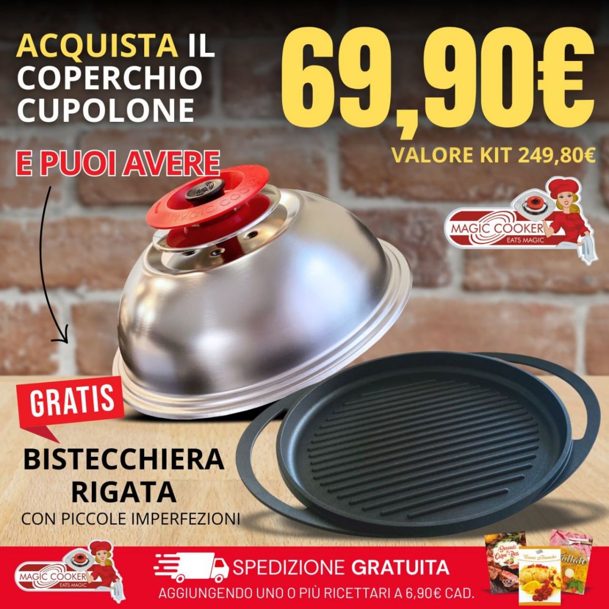 KIT ON BOARD: ART CUPOLA SANPIETRO CLASSIC + GRILL RIGATA 42x34 PICCOLE IMPERFEZIONI