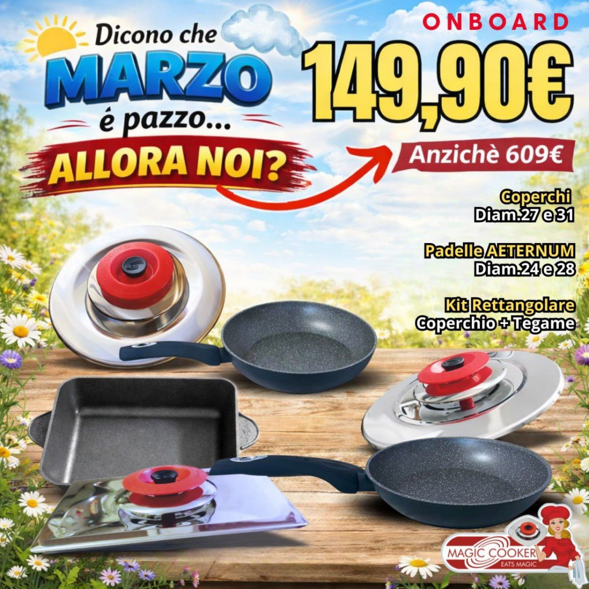 KIT ON BOARD MAGIC COOKER & AETERNUM: ART TONDO 27 - 31 CLASSIC + PADELLE AETERNUM DIAM. 24 - 28 CM + KIT BLACK DIAMOND: ART RETTANGOLARE CLASSIC + TEGAME RETTANGOLARE BLACK DIAMOND